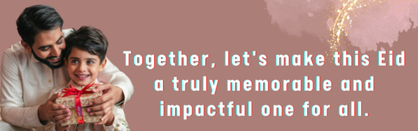 This campaign aims to bring smiles to the faces of underprivileged individuals and families during the Eid. Your contribution will help provide essential items and gifts to brighten their Eid celebrations.
