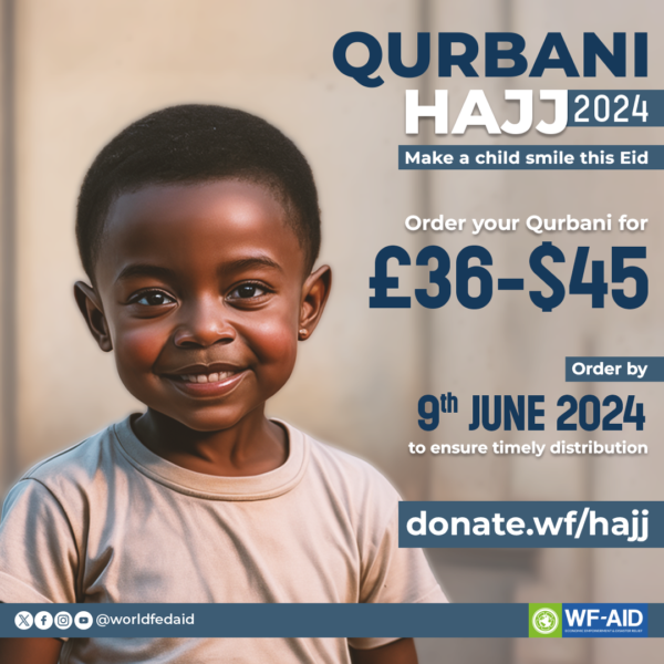 Join us in spreading compassion and kindness this Eid al-Hajj. Your generous donation to WF-AID’s Qurbani Hajj 2024 can make a real difference in the lives of deserving families.