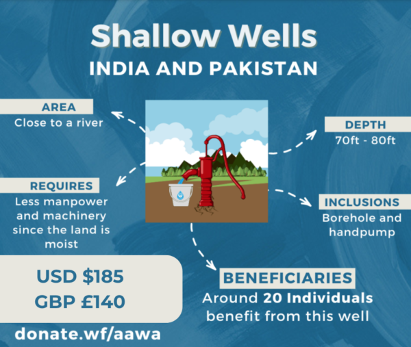 Shallow wells, strategically situated near rivers, harness the inherent moisture of soft soils to provide a sustainable water source. With depths ranging from 70 to 80 feet, these wells offer cost-effective solutions due to reduced labor and machinery requirements. Each well serves approximately 20 beneficiaries, shows how nature and human creativity come together, rendering access to clean water and fostering a brighter future.