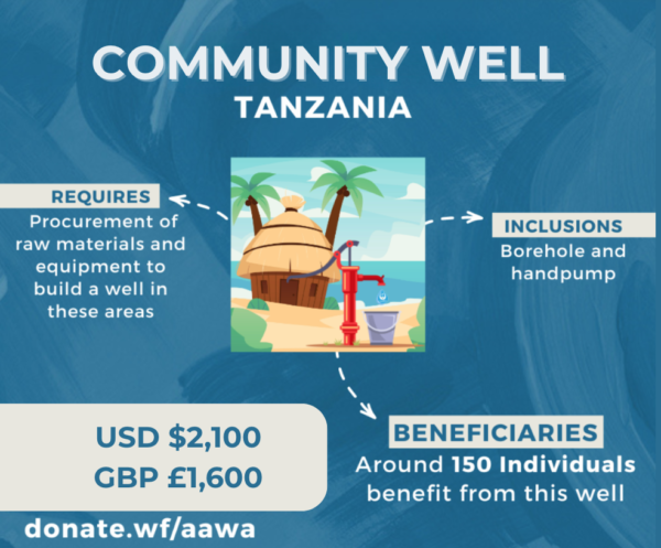 In Tanzania, the construction of Community Wells takes on a more expansive dimension when compared to the establishment of Shallow and Deep Wells in India and Pakistan. Primarily concentrated in African regions like Kenya and Tanzania, rural wells require special attention. The procurement of essential raw materials and equipment, notably the imported handpumps, contributes to increased costs. This strategic focus demands an investment that resonates in meaningful communal impact. This comprehensive strategy leads to a significant impact, providing a substantial benefit of 150 individuals per well.